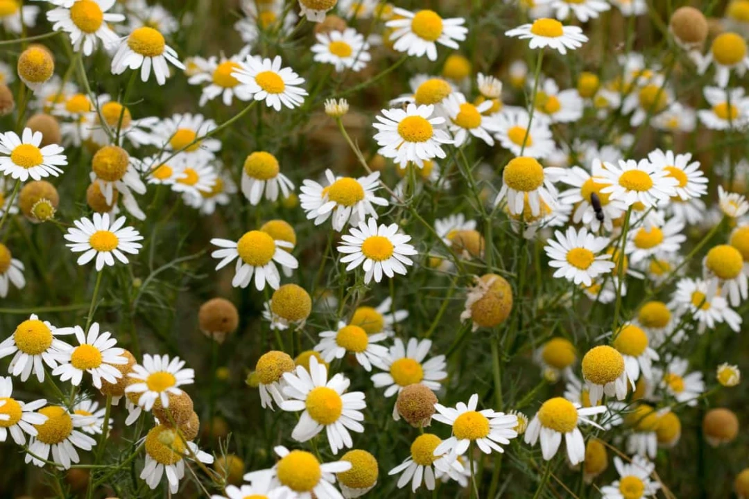 - Rumianek pospolity – łagodzi stany zapalne skóry, wspomaga trawienie, działa uspokajająco.